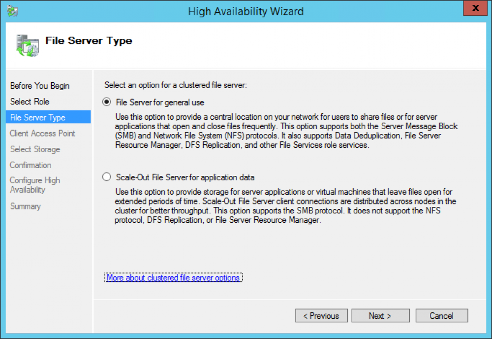 En la sección File Server Type seleccionar la opción File Server for general use (este tipo de file server es el recomendado para usuarios), presionar el botón Next.