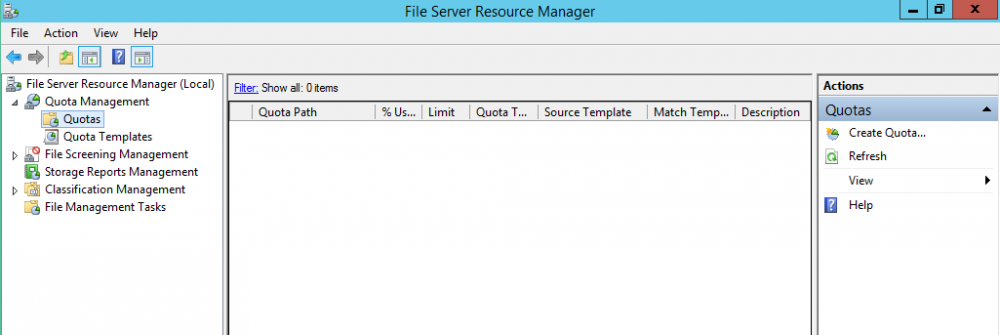Expandir el nodo Quota Management luego hacer clic sobre Quotas, en la sección Actions presionar en la opción Create Quota…